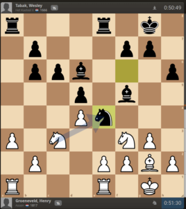 Gerard R. verslikte zich echter in de Jobava van Vincent Akkerman. Naar wat ik heb gezien was het ook gewoon een regelmatige overwinning van Vincent en kwam Gerard er geen moment aan te pas. Erg zuur……
